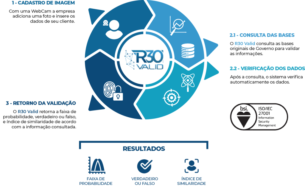 A R30 tem autorização para consultar os bancos de dados da SENATRAN e da Receita Federal, validando as informações de dados e de imagens (facial) em tempo real.